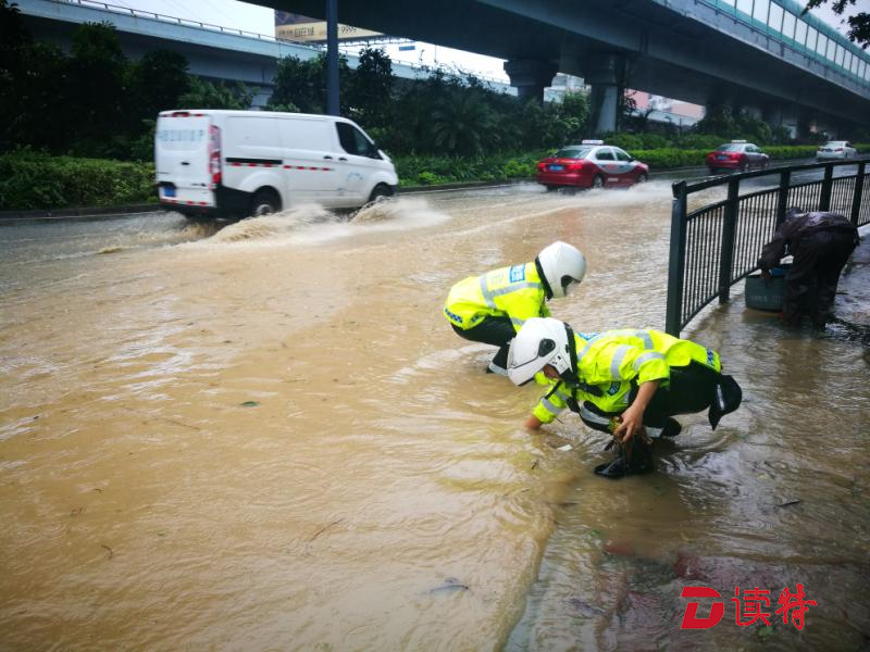 9月16日上午7時(shí)許,深圳已接近“山竹”的10級(jí)風(fēng)圈,羅湖區(qū)已是風(fēng)雨交加,風(fēng)力正在逐漸增強(qiáng)。艾力軍領(lǐng)著姚書龍、陳展廷、陳展聰3名警員駕駛警車,開(kāi)始了迎戰(zhàn)臺(tái)風(fēng)的巡邏。深南路、文錦路、泥崗路、沿河路……一邊巡邏,一邊尋找道路交通安全隱患,一路上除了警車,已經(jīng)很難看到其它車輛,看著空曠的道路,艾力軍的心里卻感到了踏實(shí)。
