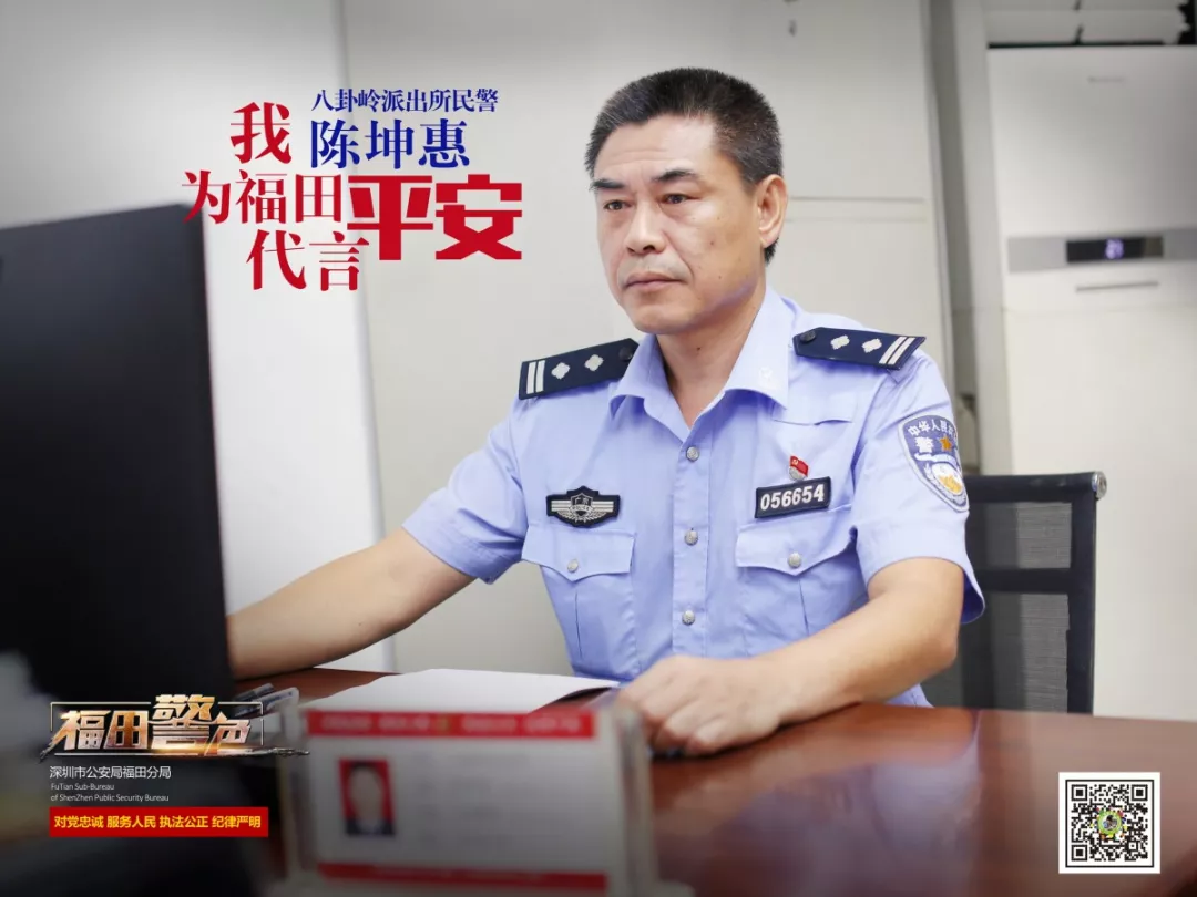 陳坤惠,48歲,1995年1月加入福田警隊。現(xiàn)為八卦嶺派出所華林社區(qū)民警,曾榮獲優(yōu)秀共產(chǎn)黨員1次,優(yōu)秀公務(wù)員2次。