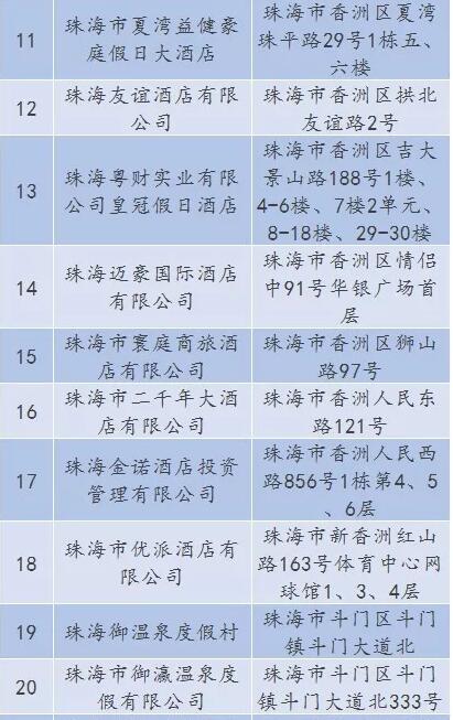 廣東省A級(jí)住宿單位名單