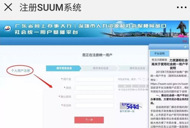 3、若無(wú),點(diǎn)擊"新用戶注冊(cè)",進(jìn)入到深圳市人力資源和社會(huì)保障局社會(huì)統(tǒng)一用戶基礎(chǔ)平臺(tái)(https://suum.szsi.gov.cn/suum)。