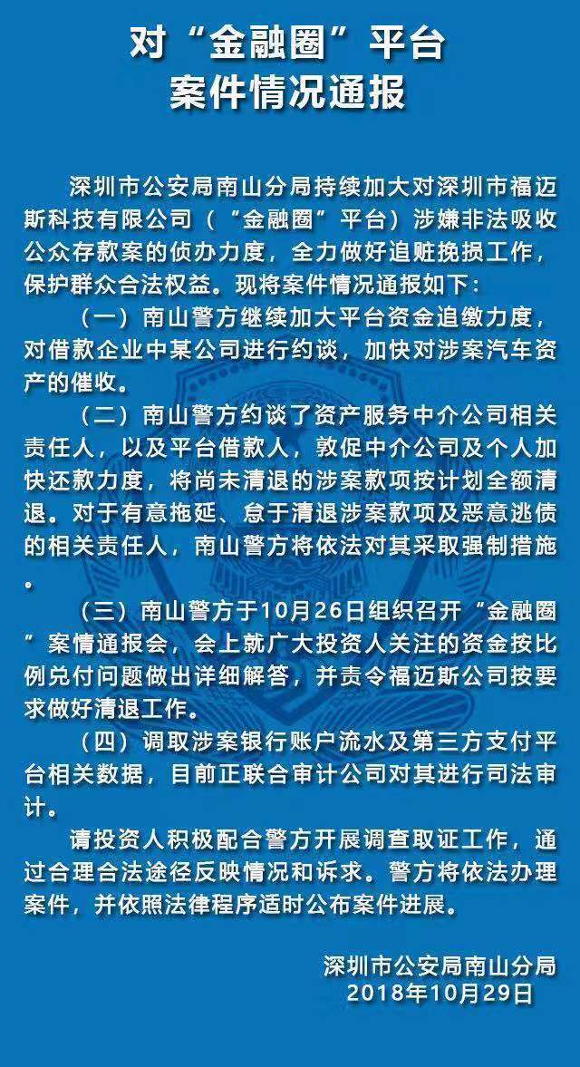 10月29日,深圳南山公安通報(bào)五家涉嫌非法集資犯罪的P2P平臺案件情況。五家平臺分別是“中融投”“投之家”“零錢罐”“利民網(wǎng)”“金融圈”平臺。