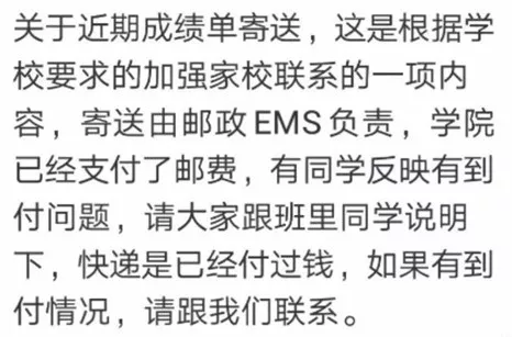 原來,家長會(huì)收到EMS快遞信封,信封內(nèi)包含《致家長的一封信》,個(gè)人的成績單和成績的換算方法。