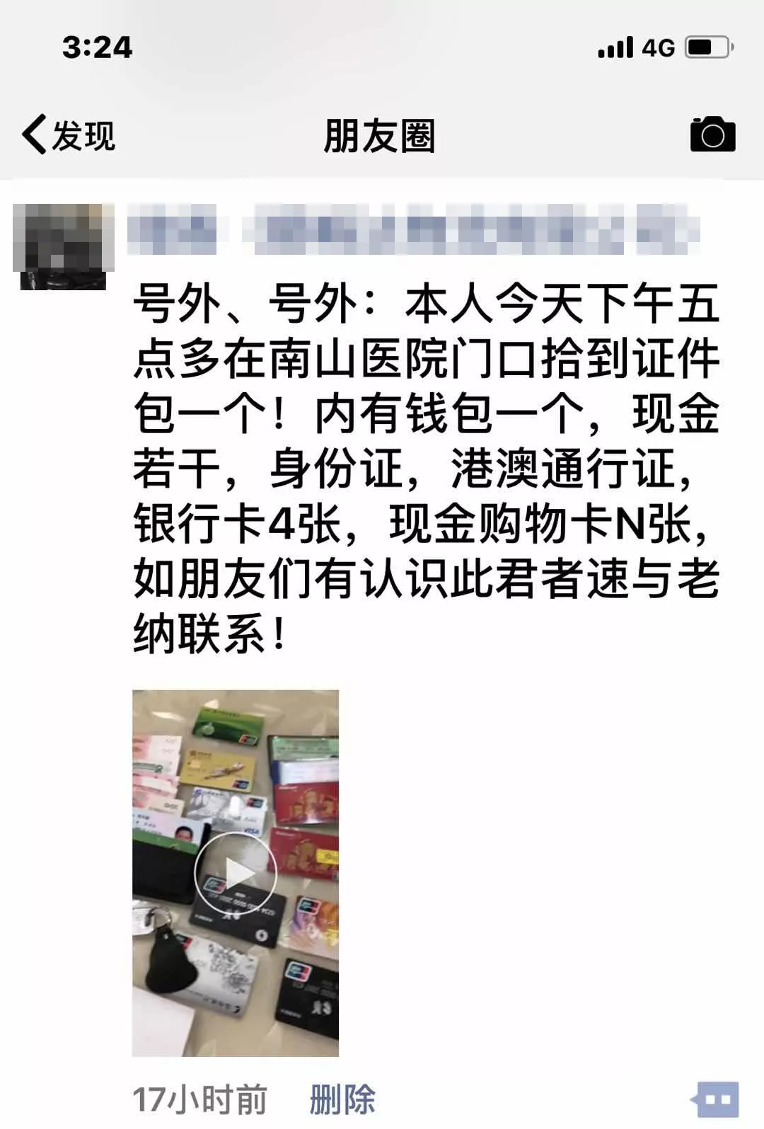 立刻發(fā)朋友圈找到失主。