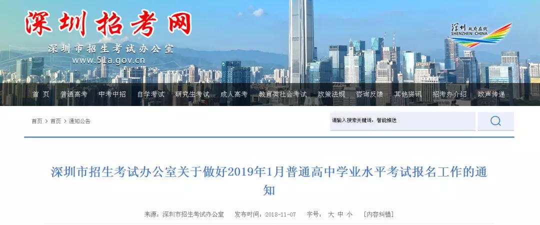 深圳新聞網(wǎng)11月12日訊(記者 劉婷)近日,深圳市招生考試辦公室發(fā)布了《深圳市招生考試辦公室關(guān)于做好2019年1月普通高中學(xué)業(yè)水平考試報(bào)名工作的通知》,明確要求:報(bào)名時(shí)間為2018年11月12日至17日,其中12日至14日為網(wǎng)上預(yù)報(bào)名時(shí)間,15日至17日為報(bào)名點(diǎn)現(xiàn)場(chǎng)報(bào)名確認(rèn)時(shí)間。