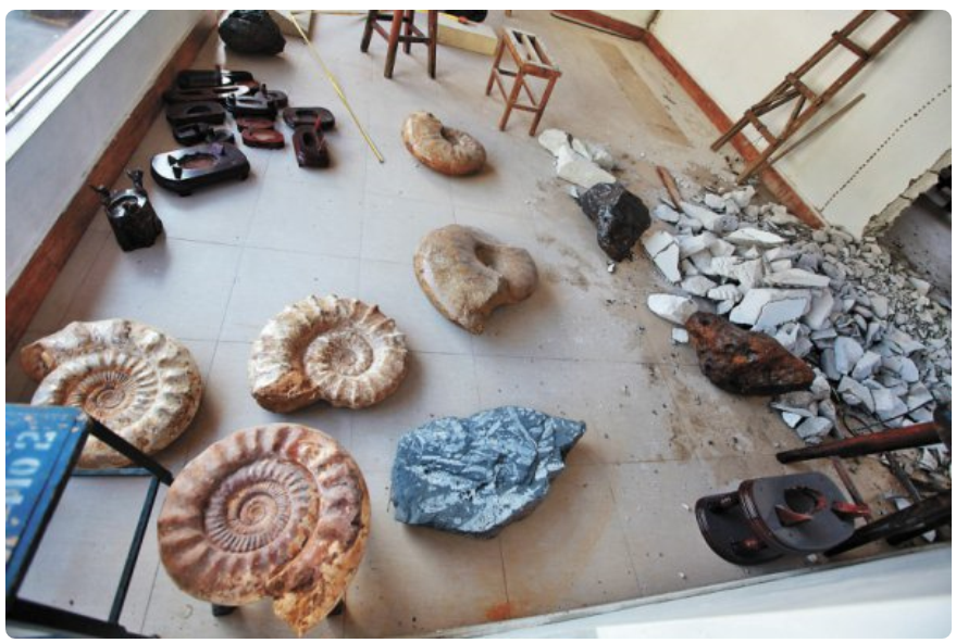 ▲涉事"科普基地"內(nèi)堆滿了各種疑似化石、隕石的石頭。深圳晚報(bào)記者李晶川攝