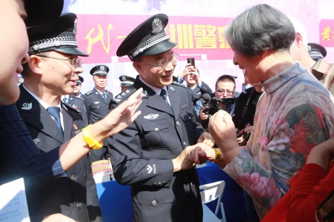 儀式后,深圳市副市長、公安局長徐文?,F(xiàn)場為來參觀活動的老人和小孩佩戴了“黃手環(huán)”,陽光的顏色,給人溫暖,讓人安心,傳遞了正能量。