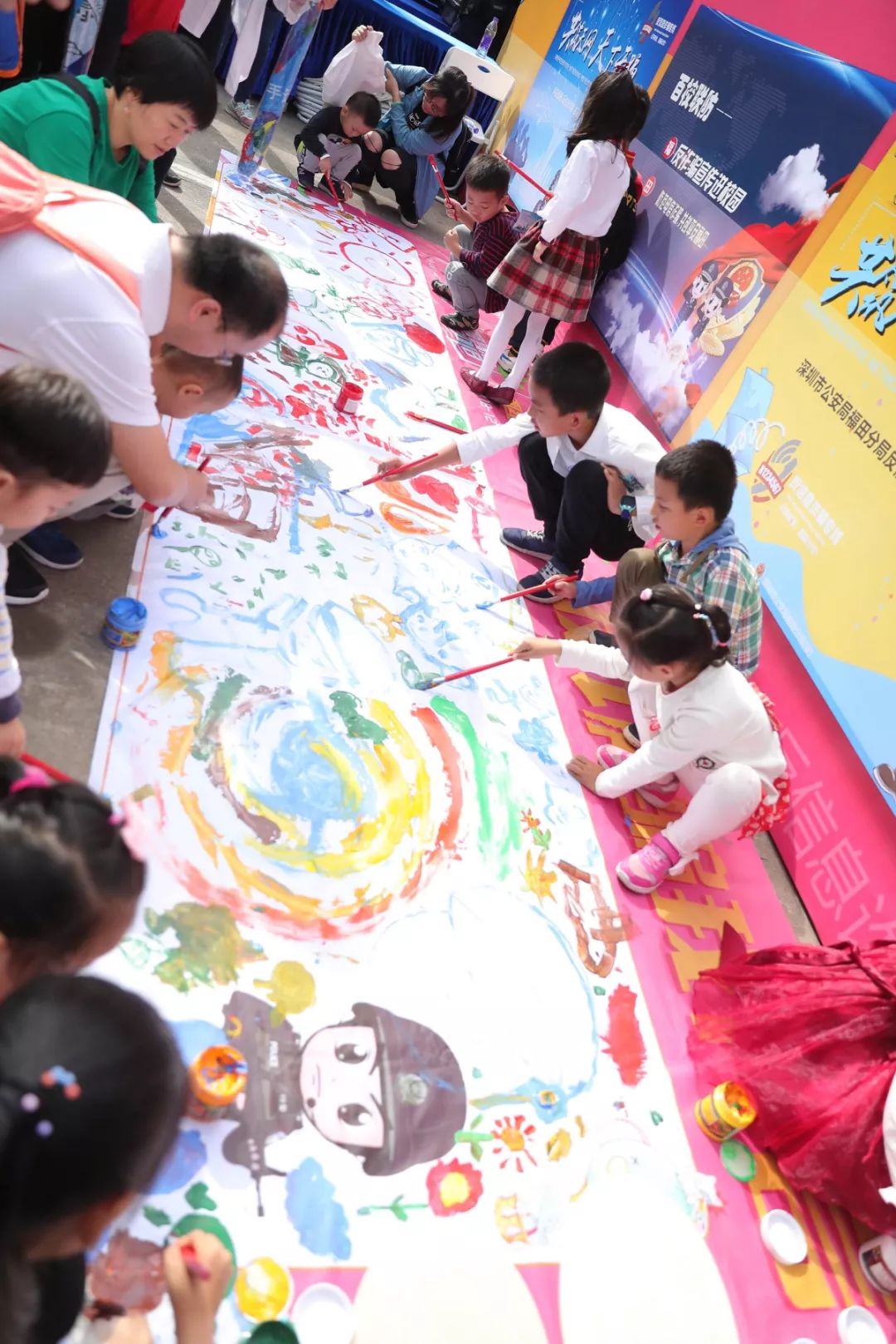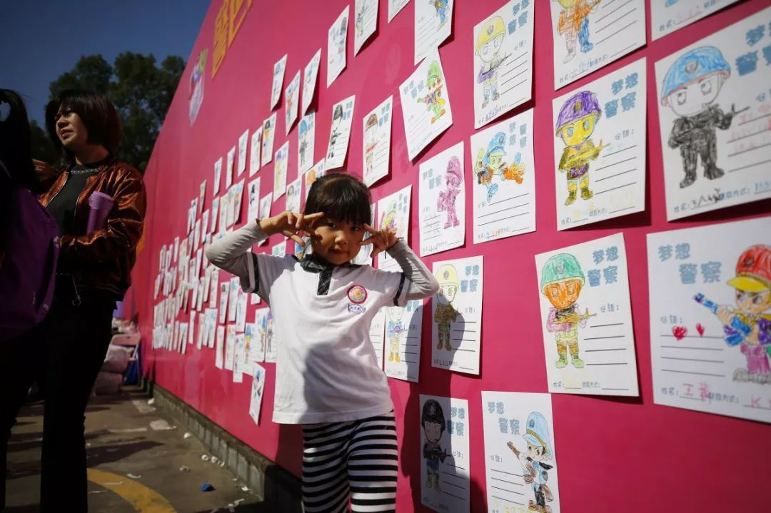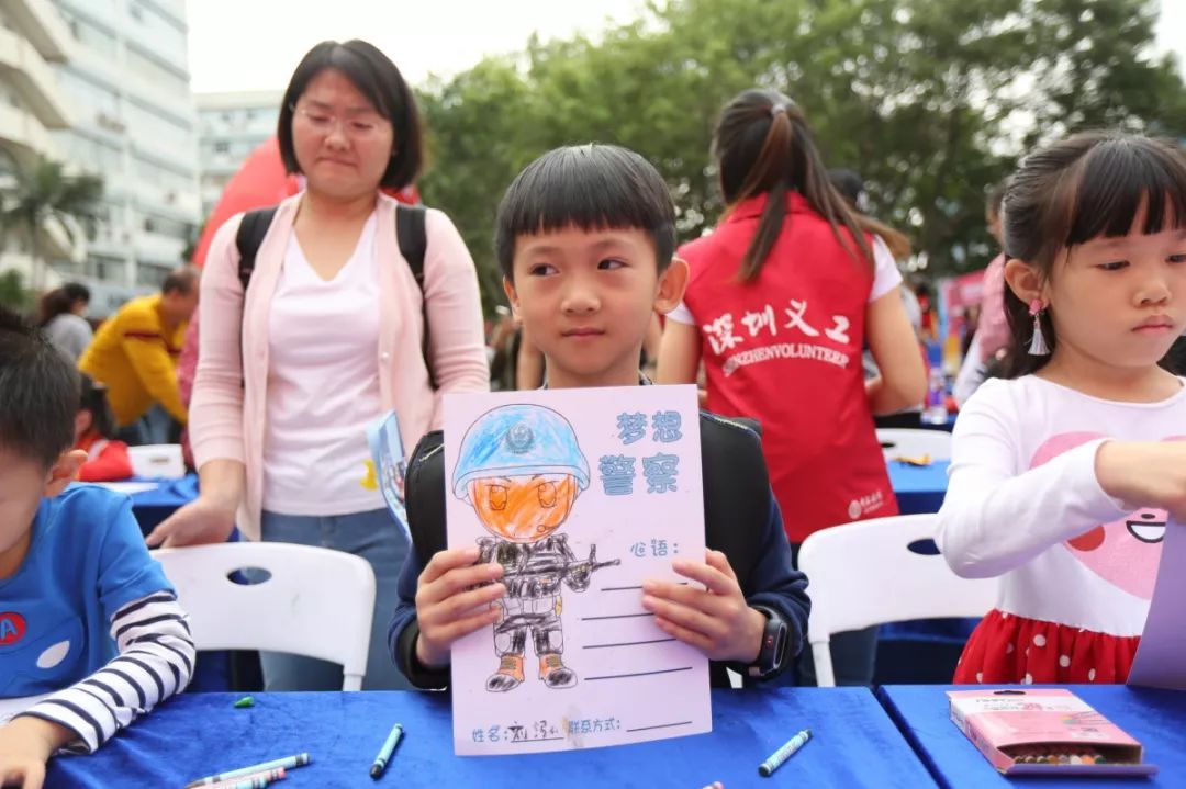 最具童年味道和勃勃生機(jī),大人和小孩現(xiàn)場涂鴉,寫出對警察想說的話,也可以在畫架畫板上畫出自己心目中的警察,在孩子心中種下警察的種子,滿滿的寄語,是對福田警察的祝福和期待,這也是警察蜀黍肩膀上沉甸甸的責(zé)任和勇往直前的力量!