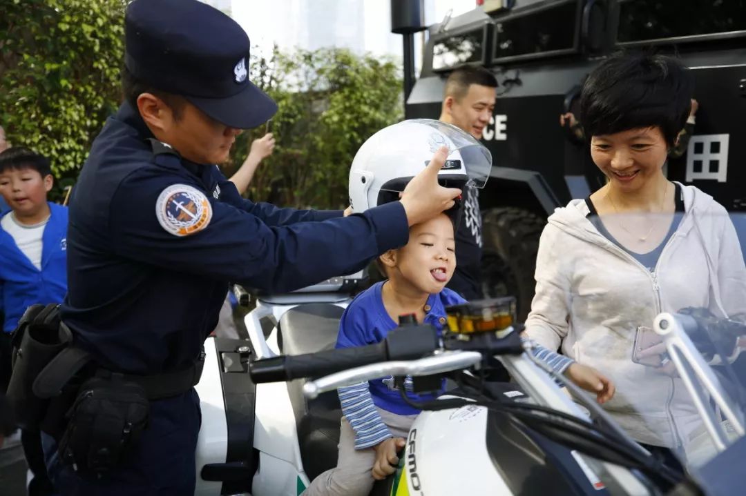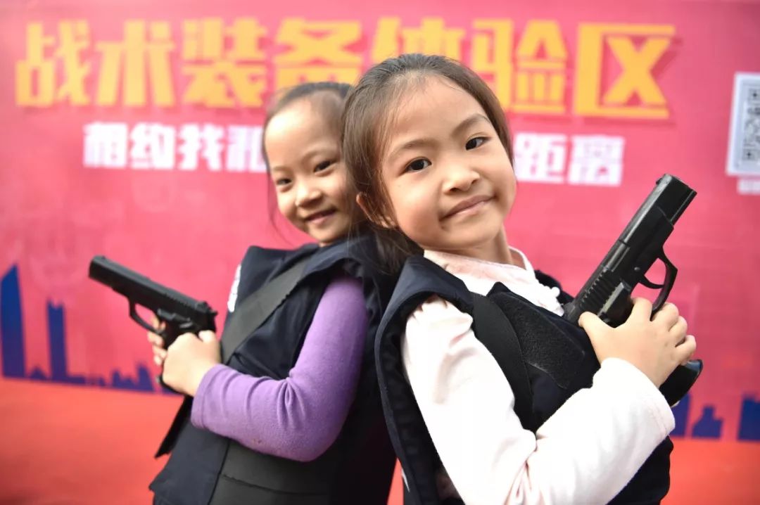 防暴盾牌、槍支警械威武霸氣,隊列棍術(shù)、擒拿格斗輪番上陣。很多人興致勃勃地穿戴警用裝備,頭戴鋼盔、身穿警服,登上反恐敞篷車拍照留念,圓夢警察夢想。