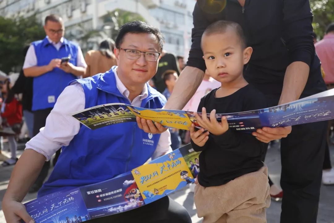 福田公安分局反詐騙宣傳團(tuán)隊開展反詐騙宣傳、互動游戲,通過異形展板、反詐騙海報等,向市民防范宣講常見詐騙手段,群眾紛紛拿起手機(jī)“移形換影”自拍,掃一掃“福田警察”二維碼,加入到反詐騙行動隊伍,為“反詐騙”代言,提高防騙技能。同時,分局法制、經(jīng)偵、禁毒、出入境、戶政等部門現(xiàn)場擺臺,民警一一解答群眾提出的各類咨詢問題。