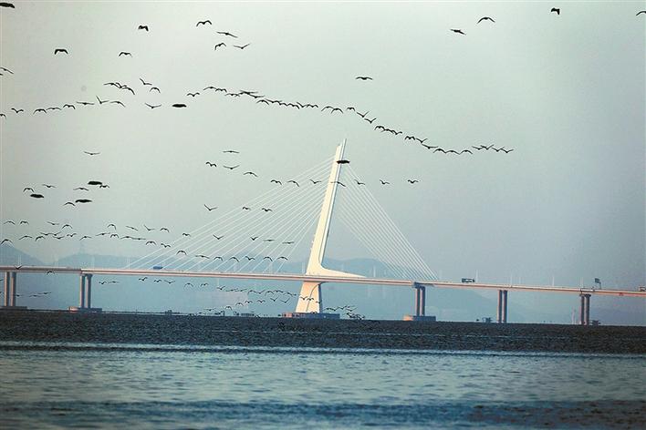數(shù)萬(wàn)只鸕鶿來(lái)深圳灣捕食