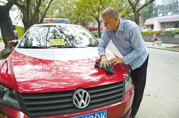 雖然第二天就要把車交出去,陽愛華還是把他的“老伙計”擦得干干凈凈。本版攝影:深圳商報記者 廖萬育