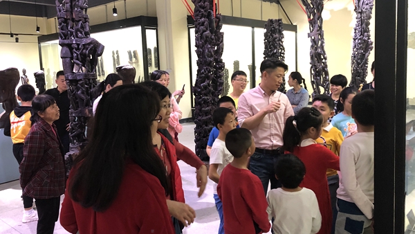 也許是被熱情的笑容和鼓舞所感染,天真活潑的小朋友們一到現(xiàn)場(chǎng)便與非洲大哥哥大姐姐們迅速的打成一片,毫無(wú)距離感。在非洲哥哥姐姐們的鼓聲引領(lǐng)下,同學(xué)們首先來(lái)到非洲文化博物館,由于大家都是第一次接觸非洲藝術(shù)品,哇哇哇的贊嘆聲此起彼伏,博物館工作人員瞬間被大家緊緊包圍,對(duì)各種藝術(shù)品提出了無(wú)數(shù)個(gè)五花八門的問(wèn)題,真正成了“十萬(wàn)個(gè)為什么”“案發(fā)現(xiàn)場(chǎng)”?!榜R賽人為什么住牛糞房子???”“木頭為什么是黑色的啊”“坐了酋長(zhǎng)椅是不是就可以做酋長(zhǎng)了?”……由于同學(xué)們第一次這么近距離接觸非洲文化,實(shí)在是太好奇太熱情,與各種藝術(shù)品親密接觸拍照、坐酋長(zhǎng)椅體驗(yàn)“做酋長(zhǎng)”的感覺(jué)、甚至工作人員也“網(wǎng)開(kāi)一面”讓大家騎在大象和獅子木雕上盡情玩耍,導(dǎo)致原本計(jì)劃半小時(shí)的參觀時(shí)間足足一個(gè)半小時(shí)才結(jié)束。