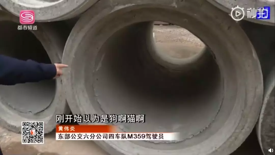 12月22日晚上十點(diǎn)多,東部公交六分公司四車隊(duì)的公交司機(jī)黃師傅剛剛下班,回家路上經(jīng)過(guò)坪山區(qū)金牌路時(shí),聽到擺放在路邊的排污下水管道有聲音便上前查看。