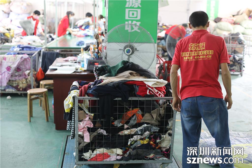 工作人員對(duì)分揀出來(lái)的衣物進(jìn)行分類(lèi)