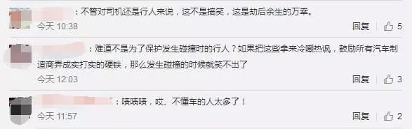 也有網(wǎng)友表示:"不管對司機(jī)還是行人來說,這不是搞笑,這是劫后余生的萬幸""防撞效果很好啊,本身就是要緩沖的""塑料懟鋼圈不就這樣?""難道不是為了保護(hù)發(fā)生碰撞時(shí)的行人?"。