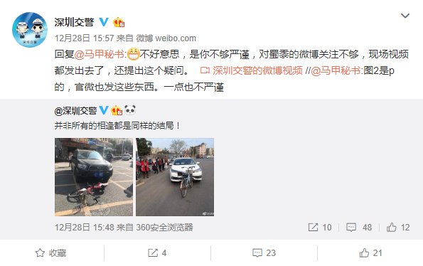 這……真的不是 P圖?確定不是擺拍?圖片發(fā)出之后,不少網(wǎng)友表示難以置信,甚至有人 @深圳交警表示抗議:"圖是 p的,官微也發(fā)這些東西。一點(diǎn)也不嚴(yán)謹(jǐn)"。深圳交警看后只能亮出以上視頻,"以示清白"!