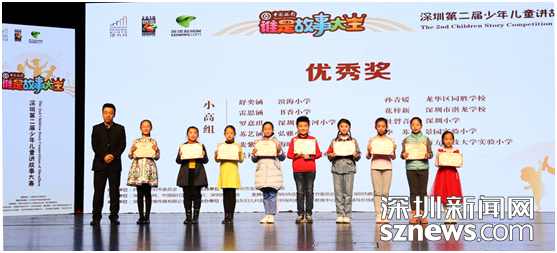 活動期間,大賽主辦方還為參加此次活動的學校、老師和小選手們頒發(fā)了最佳組織獎、優(yōu)秀指導老師、優(yōu)秀獎等獎項,從校園賽區(qū)、寶安分賽區(qū)、羅湖分賽區(qū)、中行專場、深圳新聞網(wǎng)線上海選晉級到深圳市復賽的每一位選手都獲得了參賽證明。一等獎獲得者彭妙琪在采訪中表示,“很榮幸獲得‘故事大王’稱號,這個比賽不僅讓自己聽到了更多的故事,還能增長見識,讓我們知道自己的不足,相信明年會有更多的選手加入這個舞臺。”