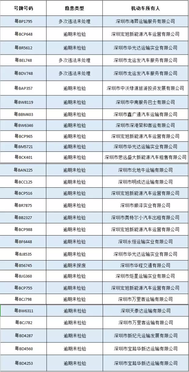 深圳新聞網(wǎng)2019年1月10日訊(記者何暢)據(jù)“深圳交警權(quán)威發(fā)布”微信公眾號消息,為嚴(yán)厲打擊大客車在春運期間的道路交通安全違法行為,通過對過往春運期間大客車的違法、事故、卡口和GPS檢查等數(shù)據(jù)建立模型進(jìn)行挖掘,分析出一批隱患大客車,具體分析情況如下: