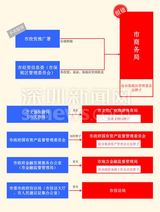 近日,《深圳市機(jī)構(gòu)改革方案》(以下簡(jiǎn)稱“方案”)經(jīng)省委、省政府批準(zhǔn),并報(bào)中央備案同意。1月8日至9日,市委召開六屆十一次全會(huì),對(duì)全市深化機(jī)構(gòu)改革工作作出全面部署,我市機(jī)構(gòu)改革工作進(jìn)入全面實(shí)施階段。