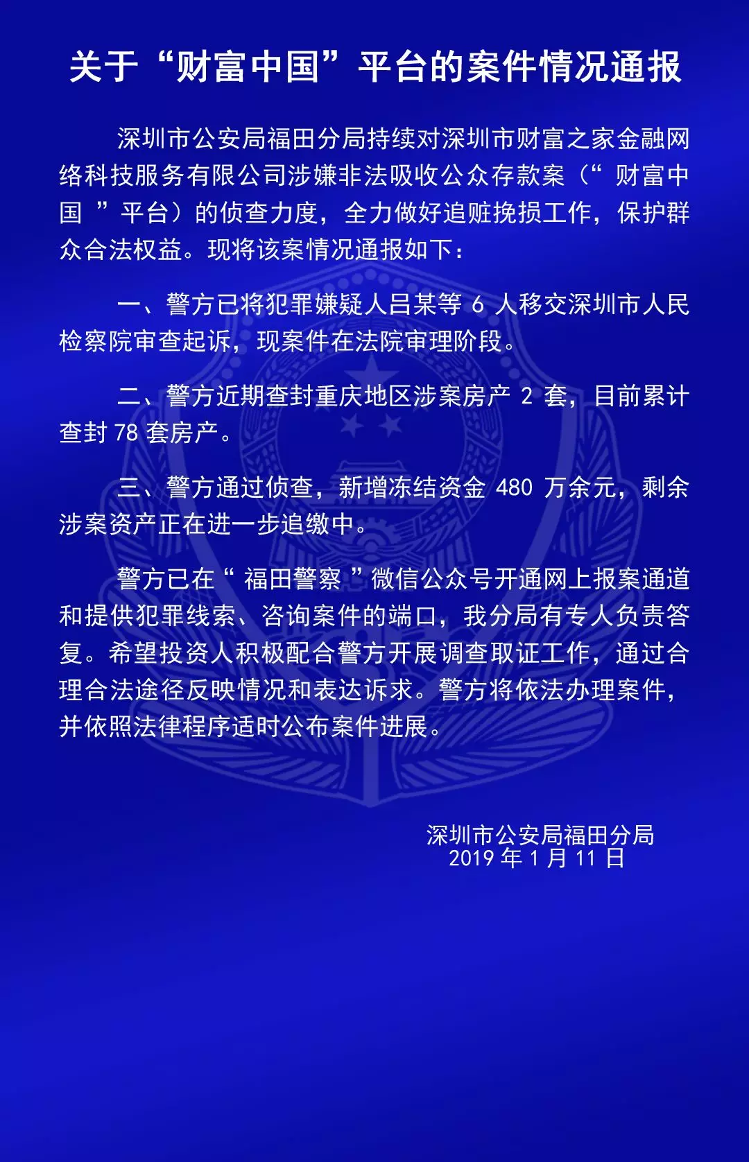 福田公安通報六家平臺涉嫌非法吸收公眾存款案的情況
