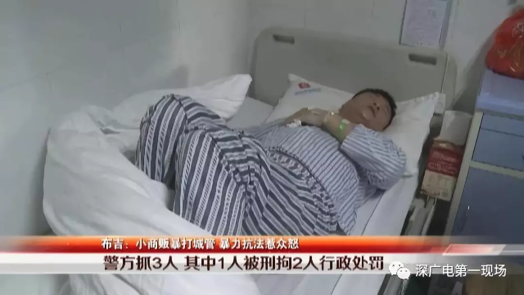 記者從中海醫(yī)院了解到,被打城管隊員徐濤右側(cè)腰兩橫突骨折。龍崗警方發(fā)通報,鑒定徐濤為輕傷,以涉嫌故意傷害罪,對光頭男子趙某青采取刑事強制措施,同時對其妻李某玉和女老鄉(xiāng)王某,以毆打他人處以行政處罰。