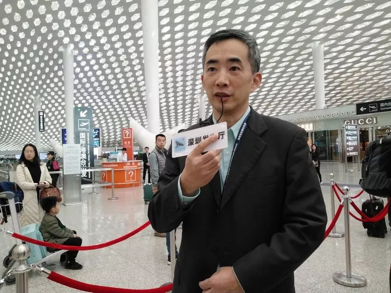 深圳機(jī)場T3航站樓航站區(qū)管理部黨支部書記陳進(jìn)泉介紹,每年春運(yùn)期間機(jī)場對廣大離深旅客送春聯(lián)的活動,這次與深圳發(fā)布廳合作,邀請寶安區(qū)書法家協(xié)會書法家給廣大旅客送“福”,把祝福帶到全國各地,很有意義。他祝福大家新春快樂,闔家安康。