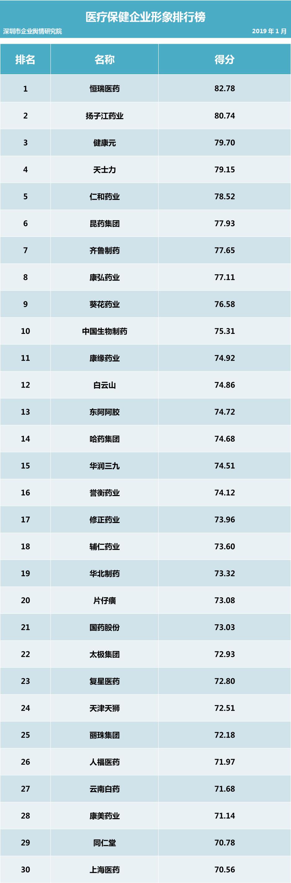 深圳新聞網(wǎng)2019年1月31日訊 (記者田志強 通訊員陳文光)1月31日,深圳企業(yè)輿情研究院發(fā)布第十二批企業(yè)輿情榜單。本次榜單重點聚焦房地產(chǎn)及醫(yī)藥保健兩個行業(yè)。醫(yī)藥保健行業(yè)輿情榜單由醫(yī)療保健行業(yè)熱點輿情事件排行榜(紅、黑榜)及醫(yī)藥保健行業(yè)企業(yè)公眾形象排行榜組成。