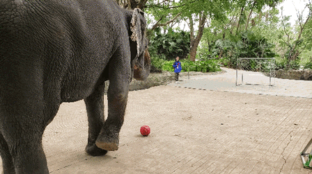 別看亞洲象龐然如山,實(shí)則溫順乖巧,是個(gè)靈活的大塊頭。想不到吧,大象會(huì)踢足球,還會(huì)自己用象鼻剝香蕉……
