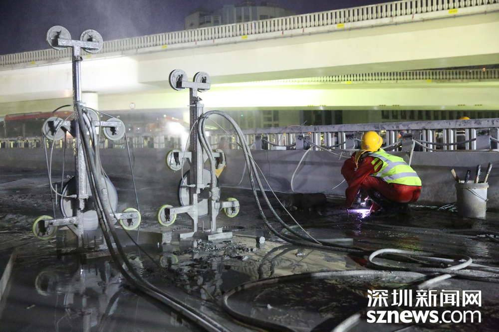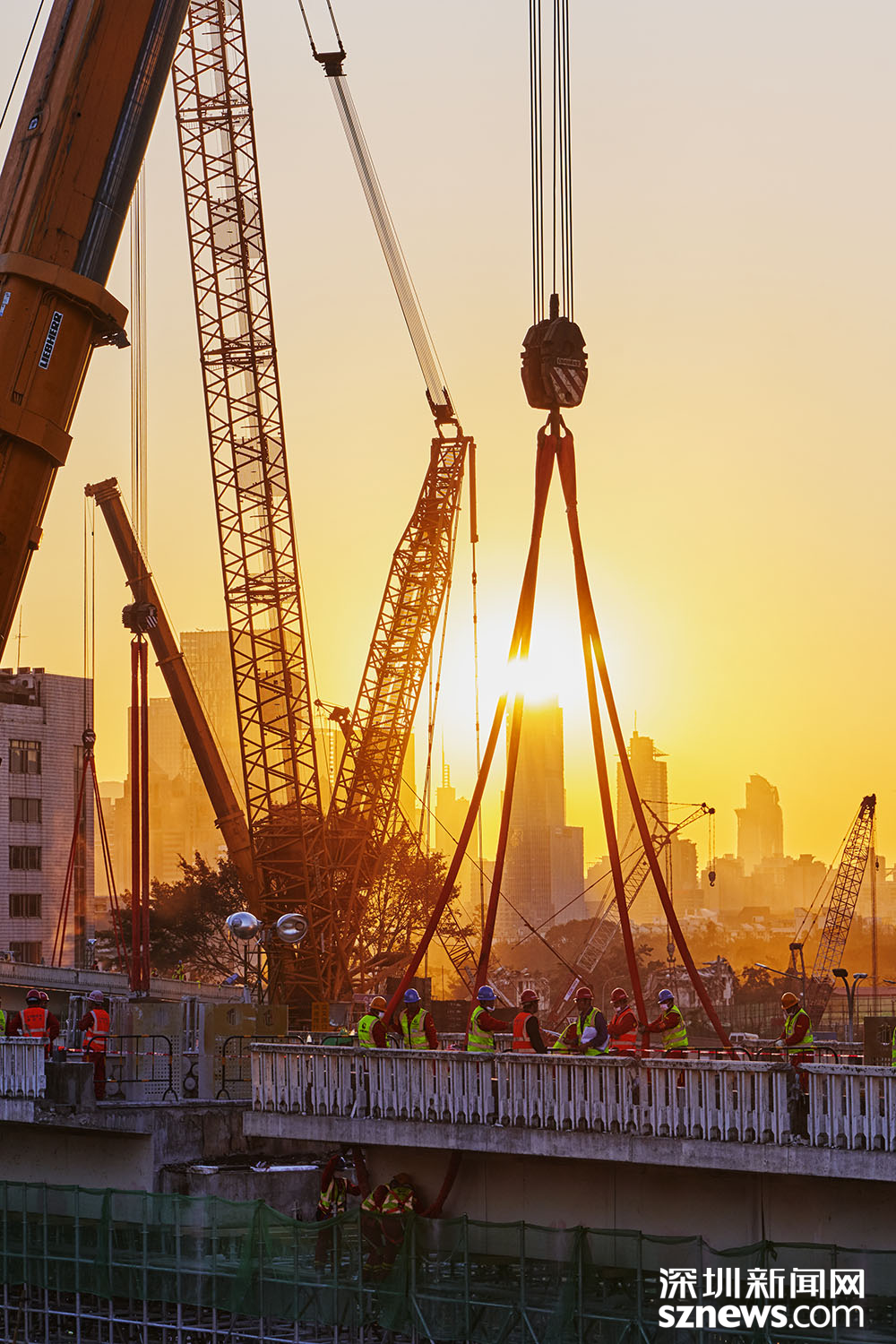 深圳新聞網(wǎng)2019年2月3日訊(記者 黃賢娟 趙穎致 黃婉婷 胡志方 林婉婷)與日漸冷清下來(lái)的街道商鋪不同,春節(jié)前夕的黃木崗立交仍是一片繁忙景象。這是2月2日傍晚,數(shù)百名身穿橙黃馬甲的工人正在忙著將立交橋切割分離。平板車(chē)、模塊車(chē)往來(lái)穿梭,將一塊塊拆卸下來(lái)的橋體陸續(xù)運(yùn)走。夕陽(yáng)西下,橙黃色工服反射出點(diǎn)點(diǎn)熒光,成為安靜的城市中獨(dú)特的點(diǎn)綴。