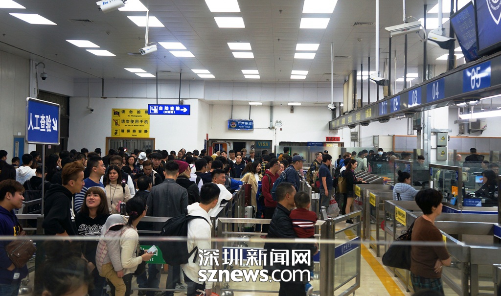羅湖口岸2月2日下午迎來入境客流高峰,截止到當(dāng)晚20時(shí),客流量21.6萬(wàn)人次(通訊員 何潔其攝)