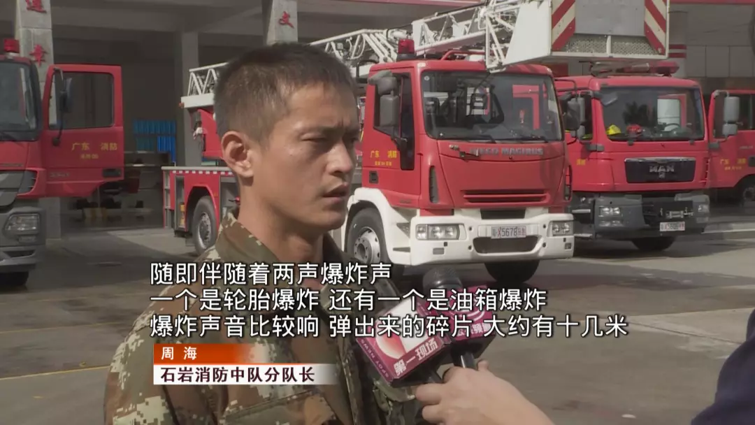 由于陳小姐及時(shí)報(bào)警,石巖消防中隊(duì)官兵在起火不久后便到達(dá)現(xiàn)場(chǎng)。到場(chǎng)后,消防立即要求還在救火的兩名司機(jī)撤離。