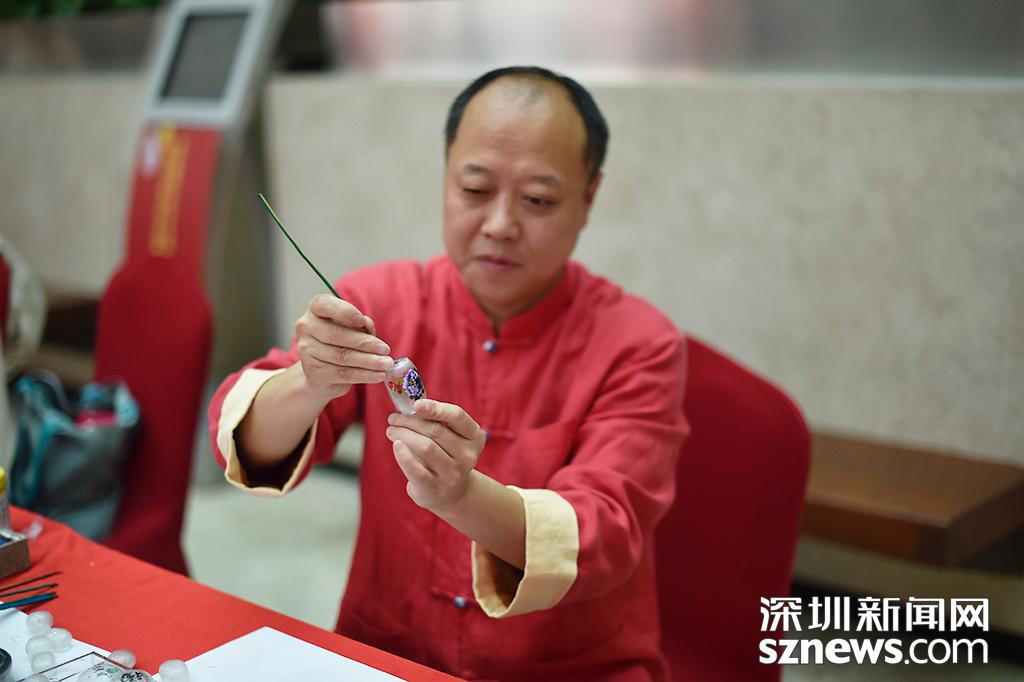 活動(dòng)現(xiàn)場(chǎng),內(nèi)畫(huà)藝人正在展示其作品。內(nèi)畫(huà)是我國(guó)特有的傳統(tǒng)工藝,現(xiàn)代內(nèi)畫(huà)藝術(shù)源于京派,分為京、冀、魯、粵、秦五大流派,河北衡水被文化部命名為“中國(guó)內(nèi)畫(huà)之鄉(xiāng)”。