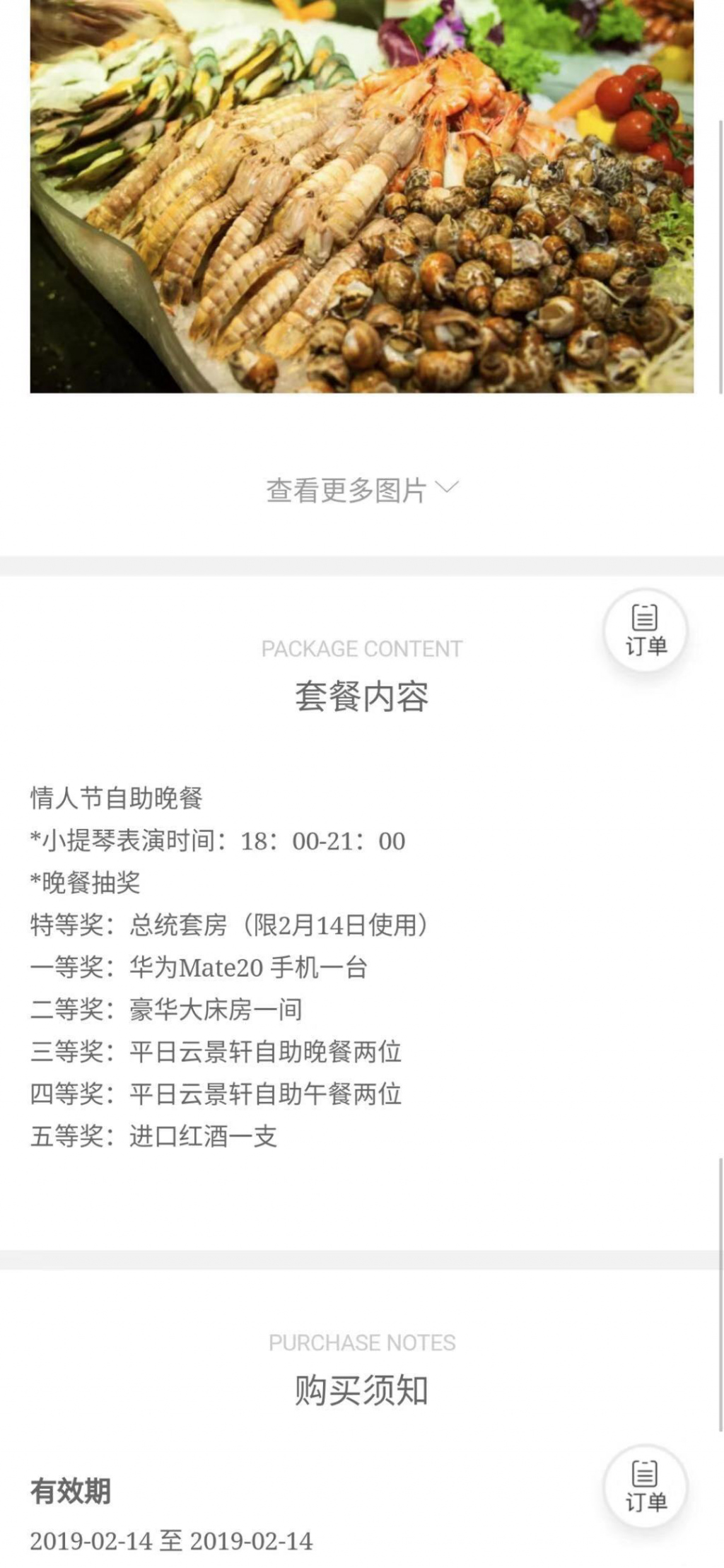 梅先生家住羅湖區(qū),2月14日情人節(jié)將至,他打算和女朋友找一個有節(jié)日氣氛的地方共進晚餐。2月13日,梅先生在深圳彭年酒店的微信公眾號上搶購了一個888元情人節(jié)雙人晚餐,并支付了所有費用。據(jù)了解,該情人節(jié)雙人晚餐是該酒店推出的"Valentine’ s Day"51樓餐廳888元 /兩位晚餐,套餐內(nèi)容包含情人節(jié)自助晚餐、小提琴表演、晚餐抽獎,其中特等獎為總統(tǒng)套房(限2月14日使用),還有一至五等獎5個獎項。