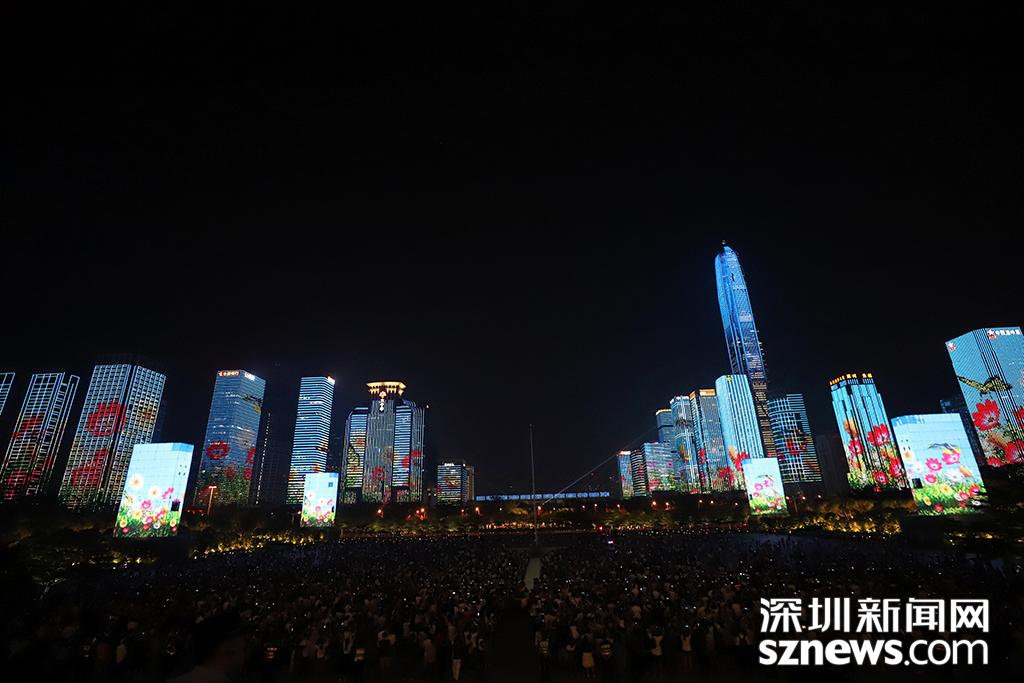 2018年9月28日,深圳燈光秀首秀,主題為和諧之境的燈光展示在市民面前 (圖/楊浩翰)