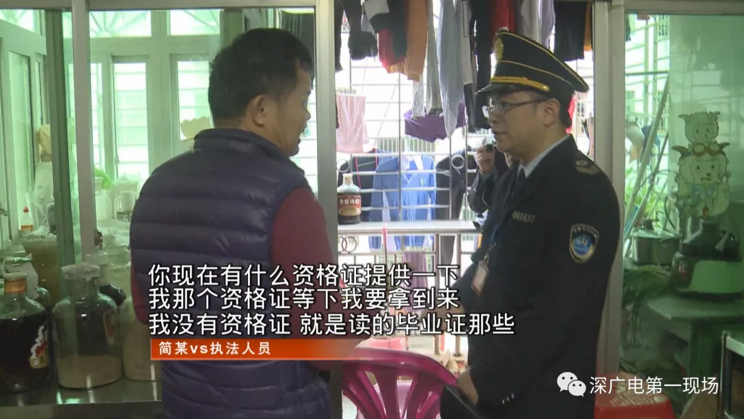 面對執(zhí)法人員的詢問,簡某表示從自己的爺爺輩開始,家里就一直從事這個行業(yè),自己也已經從業(yè)多年,來這里看病的都是熟人。