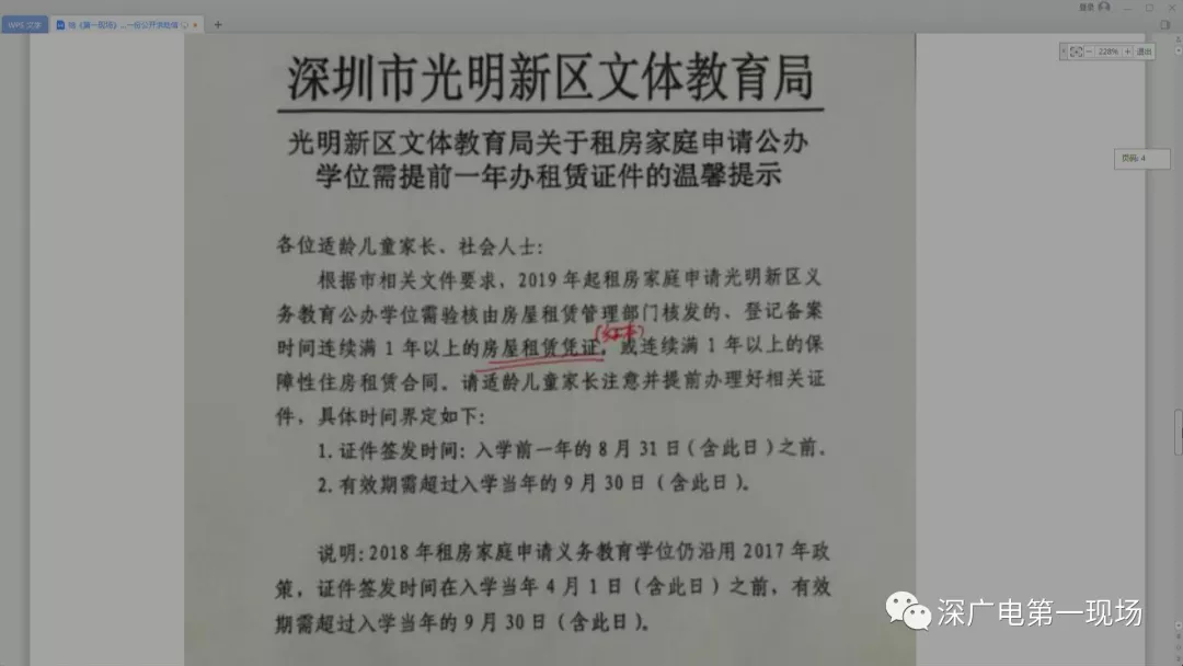 深圳市教育局今天書(shū)面了回應(yīng)《第一現(xiàn)場(chǎng)》的咨詢,稱2016年,經(jīng)市政府批準(zhǔn),市教育局和市房屋租賃辦聯(lián)合印發(fā)《深圳市教育局、深圳市房屋租賃管理辦公室關(guān)于在義務(wù)教育就近入學(xué)核驗(yàn)住房證明材料的通知》,對(duì)無(wú)法提供《房屋租賃憑證》的租房家庭,可提供由市房屋租賃管理部門(mén)出具的《房屋租賃信息》。該文件有效期為三年,有效期截止時(shí)間為2019年2月26日。2018年9月12日,深圳市房屋租賃辦來(lái)函,提出將于2019年2月28日前只受理租賃期限不超過(guò)2019年12月31日的《房屋租賃信息》辦理申請(qǐng),征求市教育局的意見(jiàn)。鑒于我市每年義務(wù)教育階段學(xué)校新生招生于4月份開(kāi)始啟動(dòng),市教育局建議辦理《房屋租賃信息》的時(shí)間延至2020年4月30日。此項(xiàng)規(guī)定,不影響2019年申請(qǐng)入學(xué)的適齡兒童。