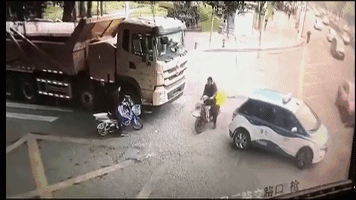 據(jù)說,當時是奶奶騎車送小孩上學(xué),從泥頭車前經(jīng)過時遭碾壓