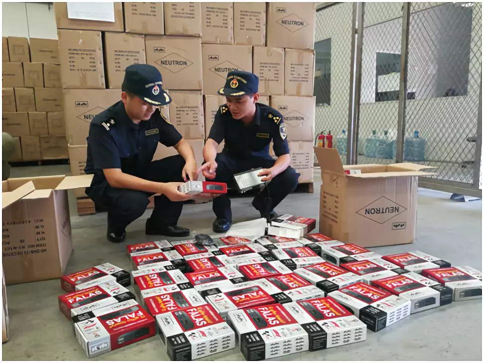 2018年10月17日,在深圳市煙草專賣局的統(tǒng)一指揮下,福田、羅湖等區(qū)局聯(lián)合公安部門展開抓捕行動(dòng),當(dāng)場(chǎng)查獲假私卷煙330萬支,查扣涉案車輛4臺(tái),案值逾320萬元,抓獲涉案嫌疑人5名。據(jù)了解,該案嫌疑人多次作案,嚴(yán)重?cái)_亂卷煙市場(chǎng)秩序,區(qū)局為此成立專案組,不分晝夜蹲點(diǎn)守候。經(jīng)過2個(gè)多月的跟蹤調(diào)查,一舉破獲這宗運(yùn)輸、倉儲(chǔ)、銷售假私煙案件。案發(fā)現(xiàn)場(chǎng)查獲兩把手槍、三包子彈及部分管制刀具等器械,目前該案由公安機(jī)關(guān)作進(jìn)一步調(diào)查處理。該案是典型的涉黑涉煙案件。此案的告破,充分借助了中央“掃黑除惡”的東風(fēng),有力彰顯了煙草專賣執(zhí)法人員不懼危險(xiǎn)的精神,切實(shí)維護(hù)了國(guó)家利益和消費(fèi)者利益。