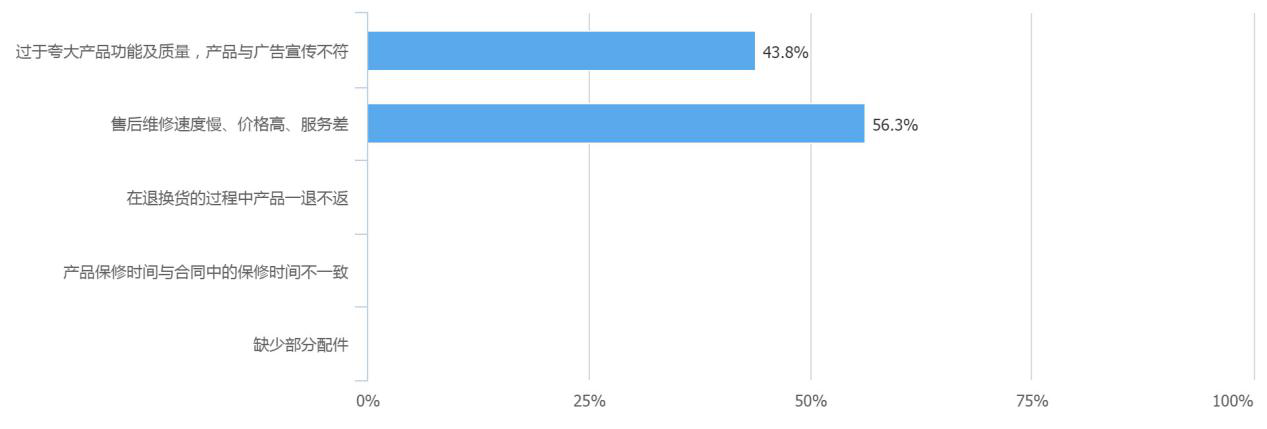 用戶(hù)最關(guān)心的問(wèn)題,售后維修依然是重災(zāi)區(qū),56.3%的網(wǎng)上消費(fèi)者更關(guān)心售后維修問(wèn)題,維修速度慢、價(jià)格高、服務(wù)差是網(wǎng)上消費(fèi)者對(duì)數(shù)碼家電售后領(lǐng)域普遍的認(rèn)知。