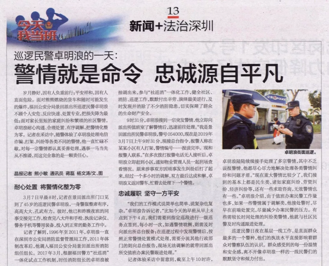 巡邏民警日夜在基層一線工作,是直面群眾最多的一個警種,他們的執(zhí)法水平直接影響著群眾對警察隊伍的認(rèn)識。群眾感受到的每一份溫情和安全感,離不開像卓明浪一樣的一線民警們的默默堅守和傾力付出。