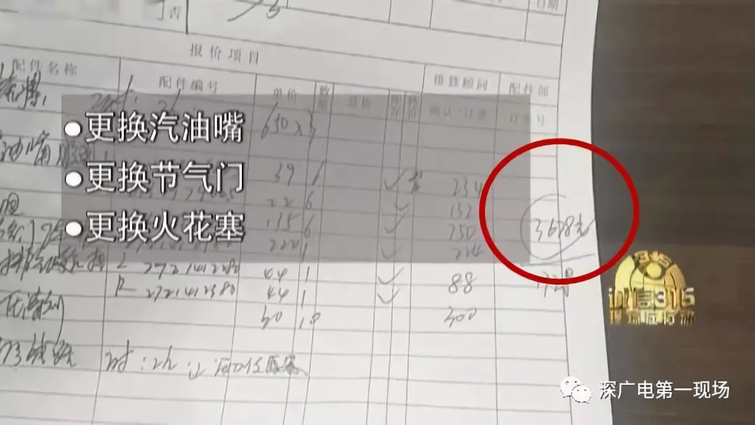 而這個小故障在經(jīng)過大興奔馳羅湖店的檢查后,卻被開出3600多元的維修費(fèi),包括更換噴油嘴膠圈、節(jié)氣門墊等部件,以及工時費(fèi)。