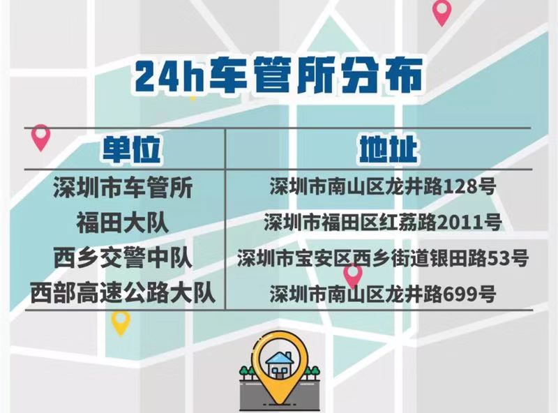 地址:南山區(qū)龍井路128號(hào)深圳市公安局交通警察支隊(duì)車(chē)輛管理所一樓西側(cè)