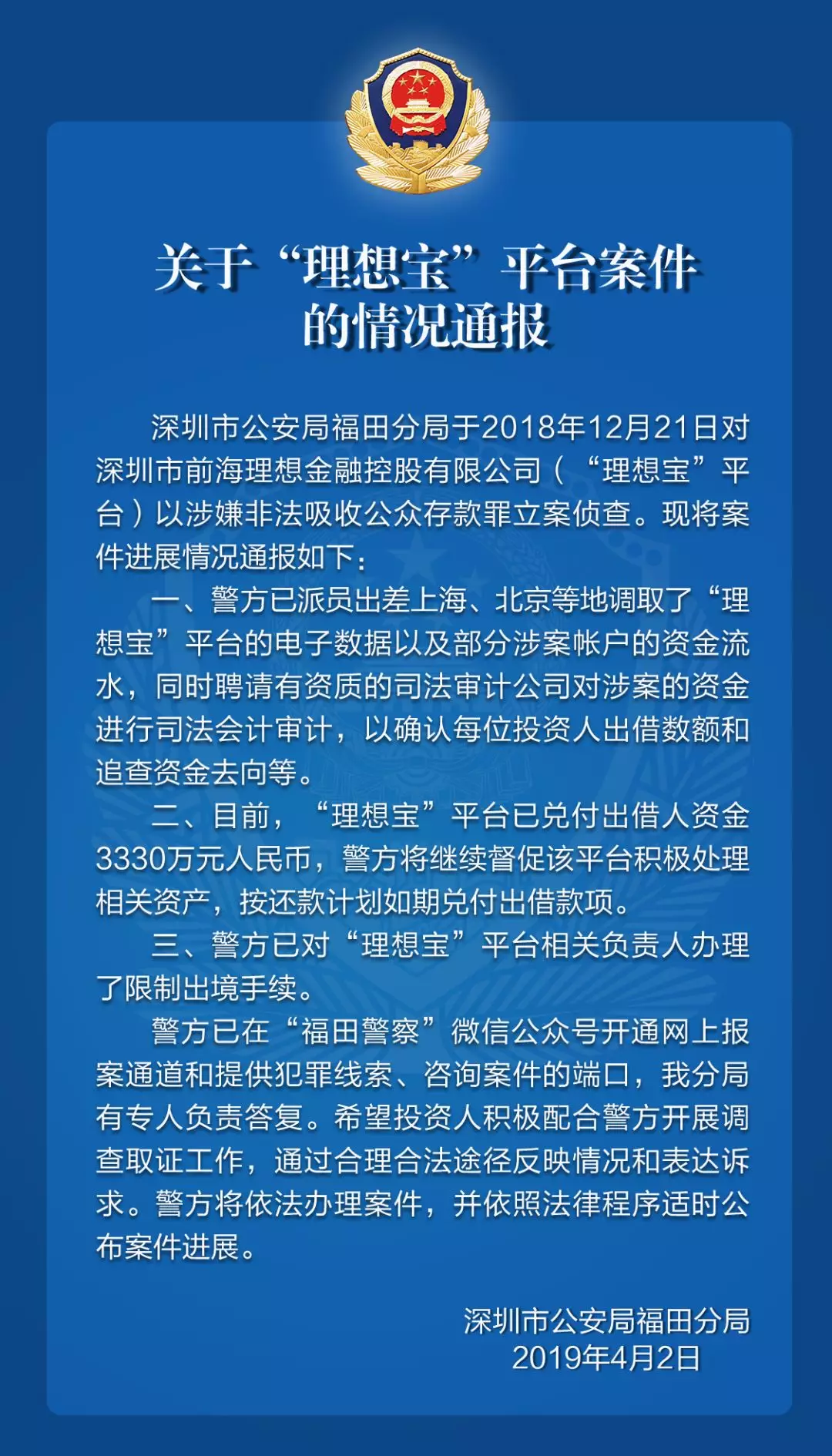 關(guān)于“理想寶”“三加壹”平臺的案件情況通報