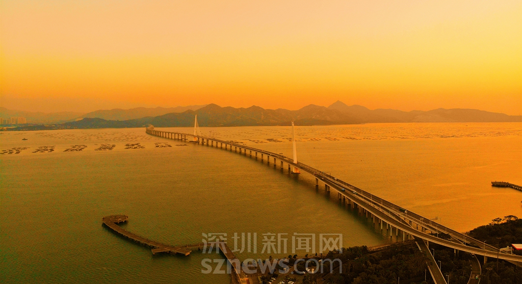 夕陽(yáng)下的深圳灣大橋
