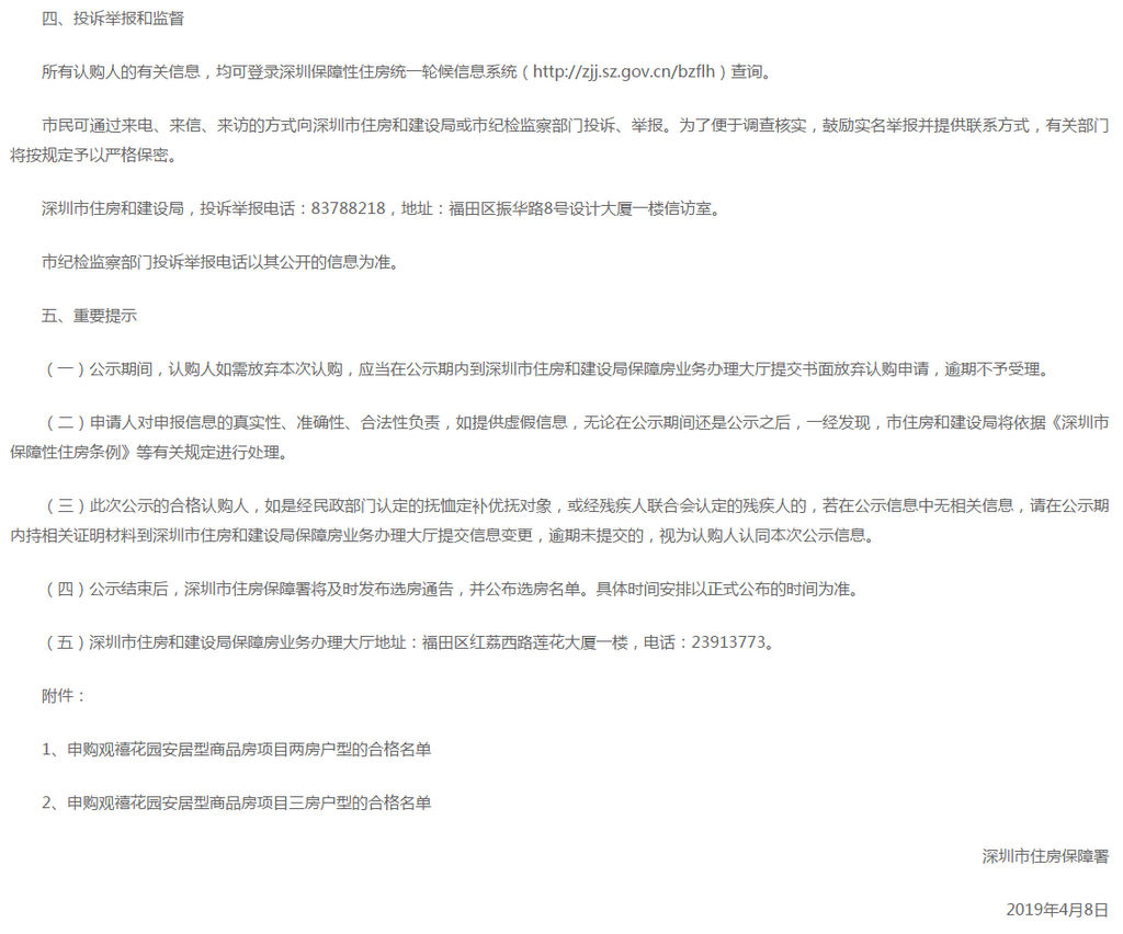 深圳新聞網(wǎng)2019年4月9日訊(記者 劉婷)記者從市住房保障署獲悉,觀禧花園安居型商品房項目認購工作已經(jīng)結(jié)束。經(jīng)核查,該項目合格認購家庭共13897戶,合格家庭名單自4月8日至4月12日在深圳政府在線和深圳市住房(http://www.sz.gov.cn)和建設(shè)局(http://zjj.sz.gov.cn/)網(wǎng)站公示。