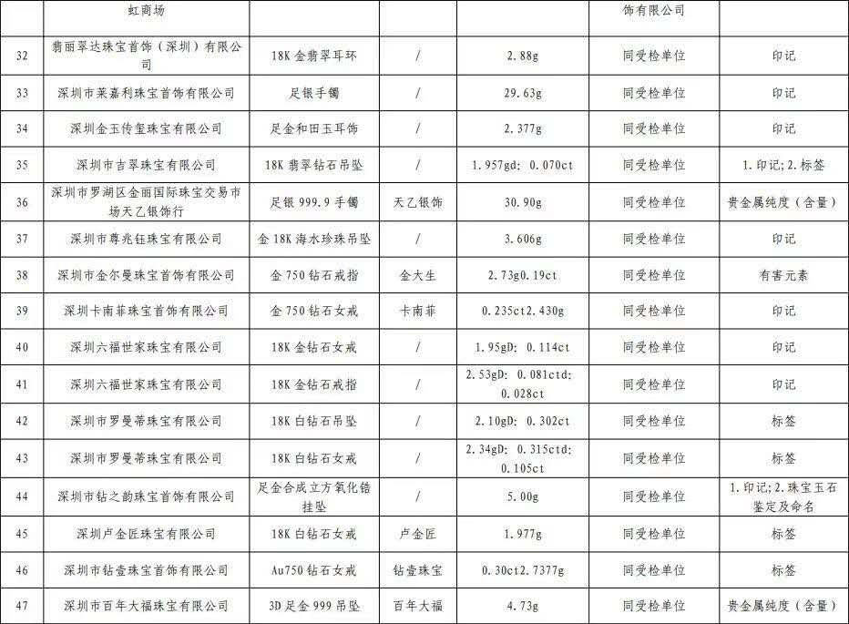 原標(biāo)題:深圳最新抽檢珠寶抽檢結(jié)果公布,不合格產(chǎn)品發(fā)現(xiàn)率16.3%