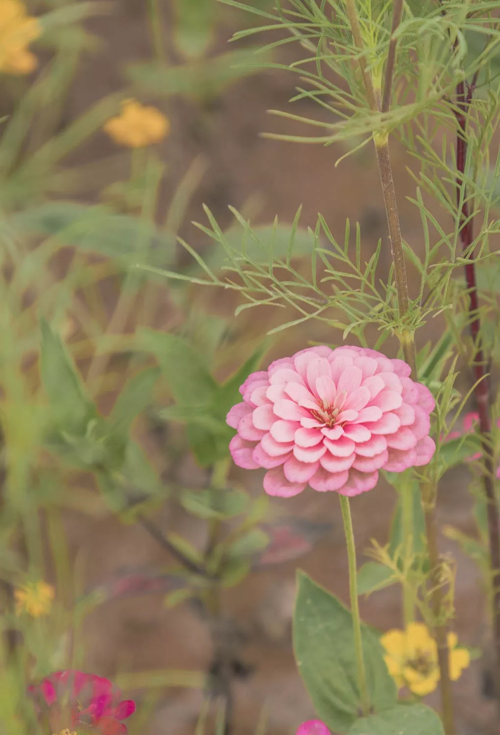 菊類花多種多樣,難以辨認,但百日菊卻很特別,它的花瓣從花心向外一輪一輪延展,既像水面漣漪,又似樹木年輪。