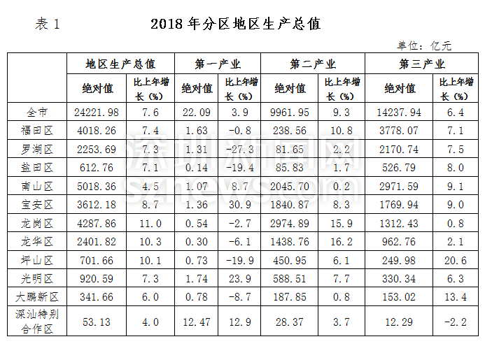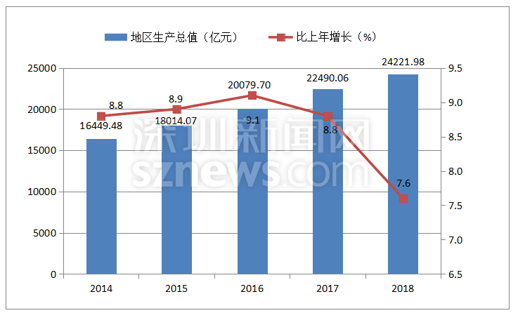 深圳新聞網(wǎng)2019年4月19日訊(記者 劉夢婷 通訊員 胡雪濤)4月19日,記者從深圳市統(tǒng)計局獲悉,深圳市2018國民經(jīng)濟(jì)與社會發(fā)展統(tǒng)計公報出爐:全市實(shí)現(xiàn)地區(qū)生產(chǎn)總值24221.98億元,比上年增長7.6%,常住人口達(dá)1302.66萬人。人均可支配收入57543.60元,居民人均消費(fèi)支出40535.02元。總體來看,2018年深圳經(jīng)濟(jì)運(yùn)行穩(wěn)健,主要經(jīng)濟(jì)指標(biāo)表現(xiàn)良好,高質(zhì)量發(fā)展扎實(shí)推進(jìn)。
