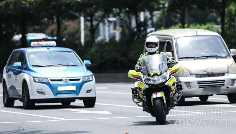 17時,路面執(zhí)勤的深圳騎警(涂勝 鐘鴻冰 攝)