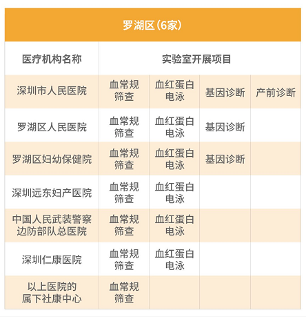 2017年起,深圳市針對常住孕婦夫婦開展免費地貧篩查項目,包括:新婚及計劃懷孕的深圳常住人口夫婦;孕前未接受地貧篩查的、夫婦雙方或一方為深圳常住人口的懷孕夫婦。